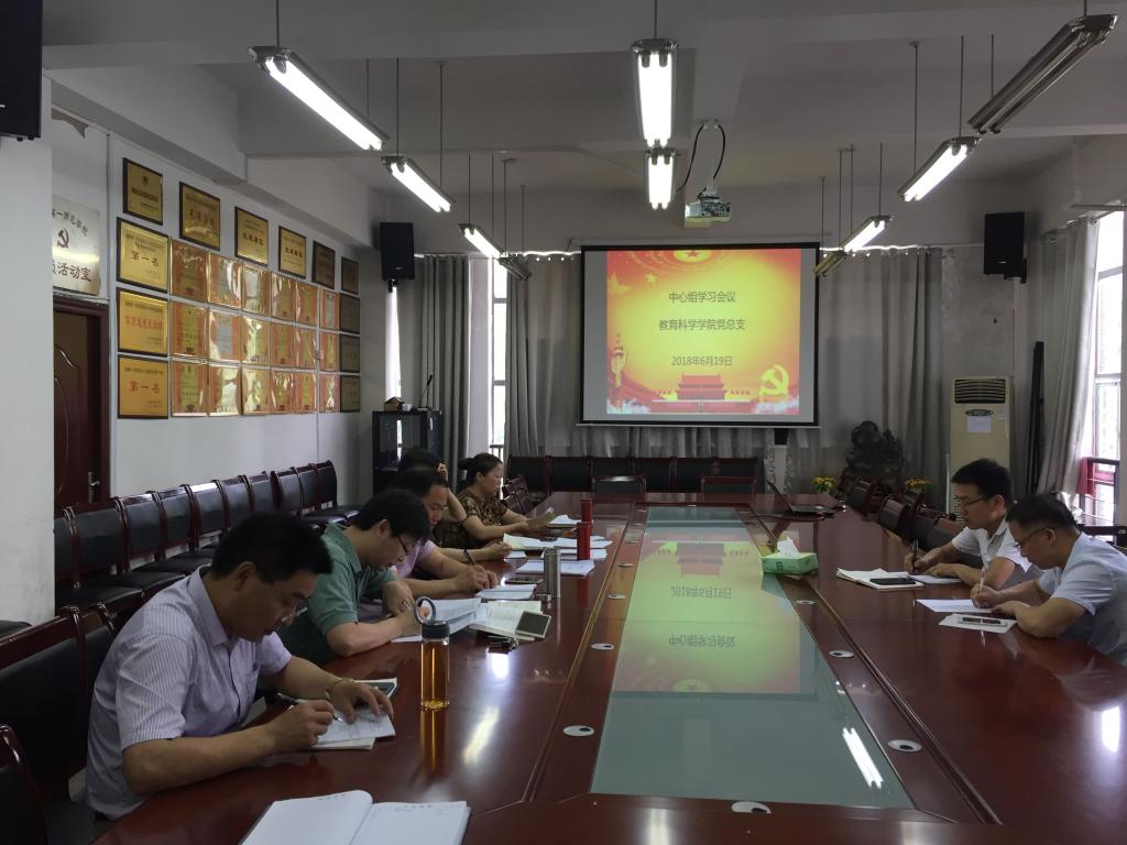 2018年6月19日下午,学院在特立楼A栋208会议室召开党总支中心组政治学习会议。会议由院党总支陈天涯书记主持,学院党总支全体委员参加了学习。