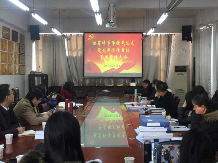 2017年12月19日下午,我院召开了党支部工作目标管理考核大会,会议由党总支书记陈天涯同志主持,院党总支委员、各党支部书记及委员一同参与了本次考核大会。