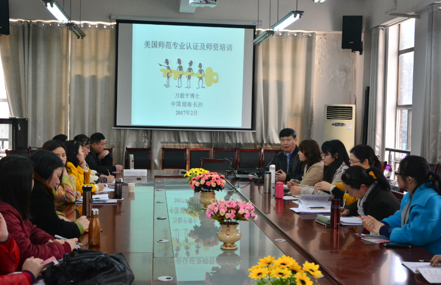 2016年,湖南省人力资源和社会保障厅下发《关于下达2016年度省级引进国外智力项目计划的通知》,我院一项引智项目“我国教师资格新政背景下师范院校教师教育改革的国际化审视与设计”获批立项,根据项目设计和学校发展实际,本项目自2016年4月至2017年4月期间,邀请纽约曼哈顿维尔学院终身正教授万毅平博士来我校进行了系列专题学术报告和研讨。我院师生广泛参与其中,受益匪浅。