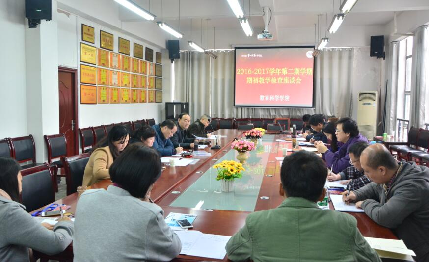 根据期初教学检查工作的要求,由刘鸿翔校长带队,职能部门负责人朱承学、邵纯、邓朝晖处长,院部领导以及教学督导组成的检查组于2月20日上午对教育科学学院课堂教学进行了检查,并通过座谈会将检查中发现的问题进行了交流与汇报。