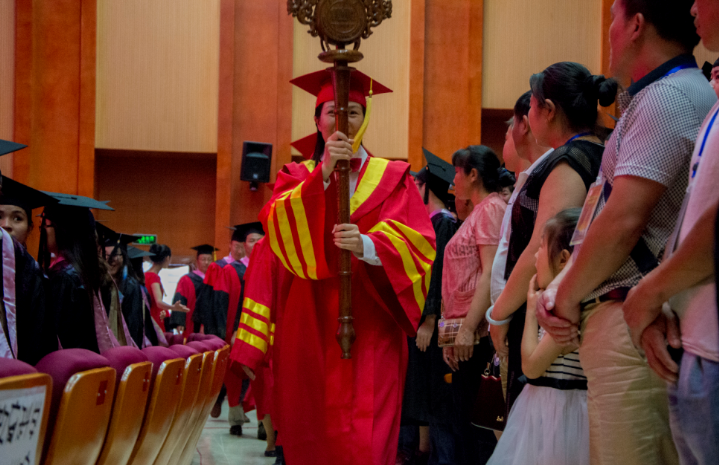 2016年6月17日下午2点半,教育科学学院和信息科学与工程学院2016届毕业生学位授予仪式在东方红校区音乐剧场隆重举行。主礼教授队伍由王杰文、田祖伟、阳西述、李新国、何昭青、王建平、曾晓洁、唐建生、黄文和刘慧群等10位教授组成,教育科学学院院长蒋蓉教授担任权杖教授。教育科学学院共744名毕业生参与了此次学位授予仪式。