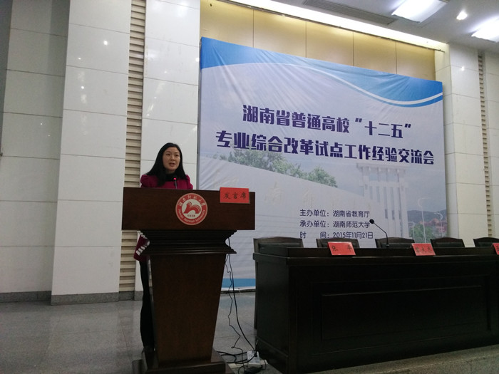 11月21日,湖南省普通高校“十二五”专业综合改革试点工作经验交流会在湖南师范大学召开,省教育厅副厅长葛建中出席会议并作了重要讲话。我校副校长童小娇率教务处、教育科学学院院长、数学与计算科学学院相关负责人参加了会议。