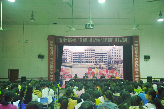 湘乡市“送培到县”活动由我校幼师国培首席专家万湘桂副教授带队,授课专家由岳麓区第二幼儿园园长向松梅、骨干教师刘毅、湖南省机关第二幼儿园副园长吕奕、中南大学附属幼儿园骨干教师陈孟、湘乡育才幼儿园骨干教师陈艺、周静等7人组成。澧县“送培到县”活动由我校袁小平教授带队,授课专家由岳麓区第八幼儿园园长彭青青、长沙高新区幼儿园副园长龚苗、长沙市教育局幼儿园骨干教师陈欢、中南大学幼儿园骨干教师邹勇、株洲市幼儿园骨干教师刘媚以及澧县金龙玉凤幼儿园骨干教师周静等7人组成。两地共有770多名幼儿教师参加培训。