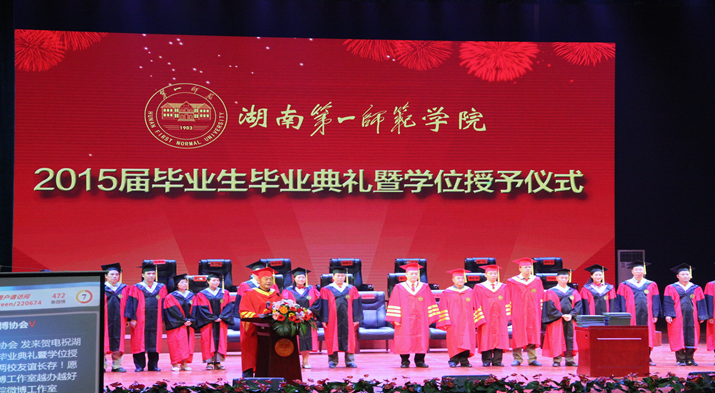 “衡山西,岳麓东,城南讲学峙其中。人可铸,金可熔,丽泽绍高风。多材自昔夸熊封。学子努力蔚为万夫雄。”在激昂雄壮的校歌声中,2015届本科毕业生毕业典礼暨学位授予仪式圆满结束。