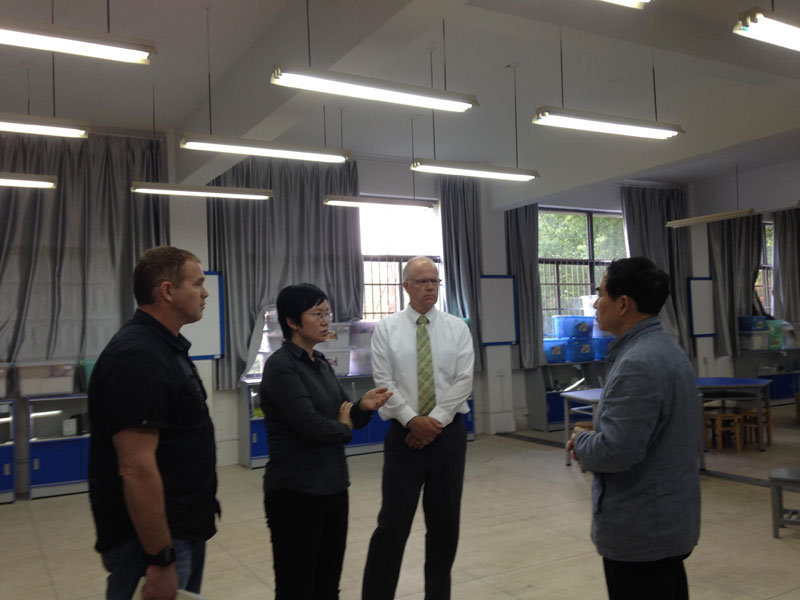 友好洽谈结束后,eric freden一行人在教育科学学院副院长张平柯教授的陪同下参观考察了教育科学学院的小学科技制作室、地球与空间科学实验室、小学科学多功能实验室等实验室。张平柯教授就实验室基础设施用途、实验目的、开设的实验项目、实验对象及实验室如何有效利用作了详细介绍,得到了来访客人积极认可和高度评价。