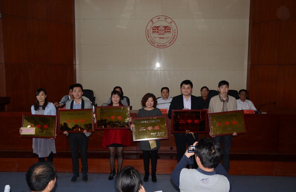 在一年一度的全校学生工作量化考核中,我院学工人员充分发挥团队协作精神,改善以往学生工作中的不足,克服困难,加强学生常规精细化管理,彰显全员育人凝成合力,全面造就魅力教科”的学工特色,在2014年学生工作量化考核中荣获二等奖,在2015年4月16日举行的学生工作总结表彰大会中得到表彰,同时受到表彰的还有2014年度优秀辅导员罗娱、刘军两位辅导员。希望在今后的学生工作中不断提升团队素养和工作实效,迈上新的台阶。