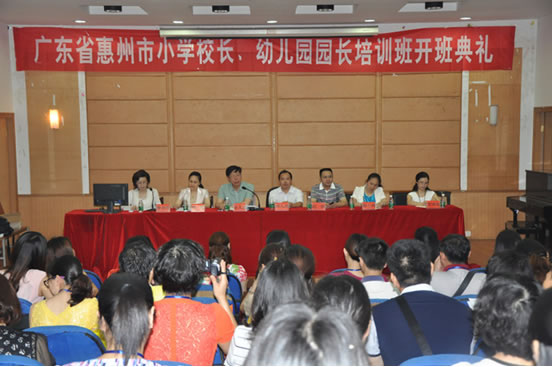 6月13日上午,我院举办的广东省惠州市小学校长、幼儿园园长培训班开班典礼在城南书院校区举行,来自广东惠州市50名小学骨干校长和50名幼儿园骨干园长将在我院接受为期8天的集中培训。广东省惠州市教育局副局长邓凡用,惠州市教育局培训科科长谢茵,我校副校长李克勤,副校长刘宇,继续教育部主任、校长培训首席专家曾小玲,教育科学院学前教育教研室主任、园长培训首席专家万湘桂,继续教育部副主任黄朝霞,出席开班典礼并在主席台就坐。开班典礼由黄朝霞主持。