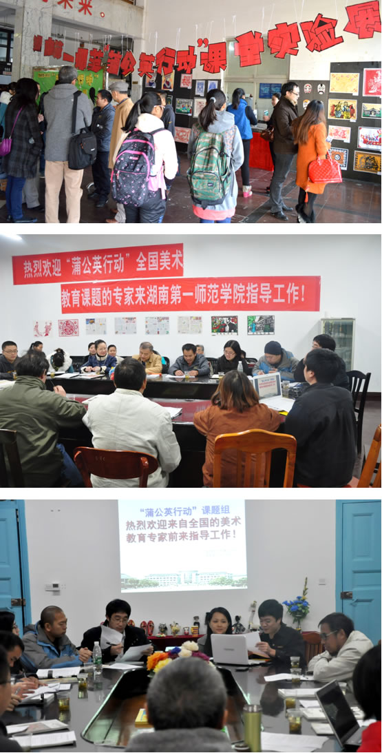 会前,与会人员在城南书院校区教学楼大厅观看了我院“蒲公英行动”课堂实验展,对初招起点公费师范生创作的富有民间特色的美术作品赞口不绝。会上,课题主持人谢丽芳研究员作了《“蒲公英行动”课题实验简介》汇报,总结了现阶段该课题取得的成果。课题项目单位代表、教育科学系王勇全老师做了《bevictor伟德官网“蒲公英行动”实验情况》汇报,他向嘉宾介绍了初中起点五年制专科、六年制本科农村公费定向师范生的特殊性,并对课题在我院教育科学系的可持续性发展提出了eliu模式的设想。课题实验教师代表、湘西凤凰县腊尔山小学美术教师龙俊甲做了《种子的作用》发言,介绍了他参加课题实验后开发与利用当地资源开展小学美术教学取得的优异成果。课题青年志愿者代表、首都师范大学美术学院段鹏博士做了《蒲公英行动第四期与网络平台的思考》的发言,他指出,课题第四期以网络平台的探索与宣传为主,通过“儿童与民间美术”课题网站、微博、微信等多种虚拟网络进行传播与推广,更新网络内容,实现虚拟网络和实体网络相结合。专家团队代表、广州美术学院美术教育研究所所长陈卫和教授做了《蒲公英行动可持续发展的思考》的讲话。他认为,课题志愿者的热情是否能转化为持续的责任感和使命感有一定难度,要培养更多的种子教师和能持续下去的志愿者。与会嘉宾们围绕“蒲公英行动”课题畅所欲言。最后,美国福特基金会项目官员何进博士总结了课题发展的四个阶段工作,充分肯定了课题研究目前所取得成绩。