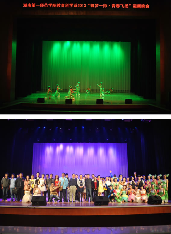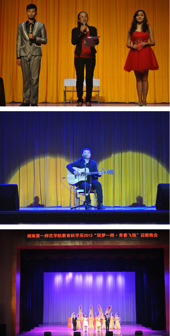 2013年10月16日晚,教育科学系“筑梦一师,青春飞扬--2013年迎新晚会”在艺术楼音乐剧场隆重举行。学院学生工作处何文处长、宣传部陈志武部长、教育科学系张平柯副主任,党总支谭玉兰副书记、蔡海军副书记,学工办陶青主任、刘军老师以及专职辅导员应邀出席了此次晚会。