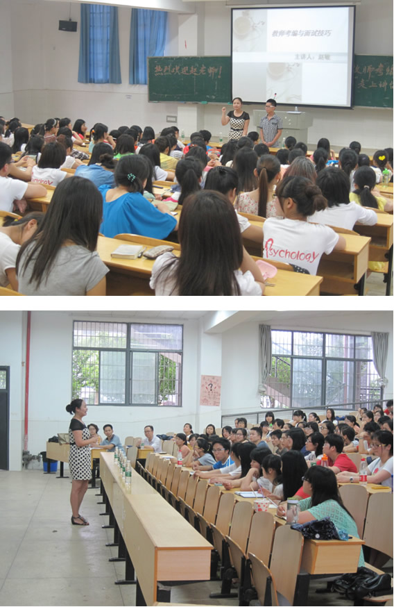 6月6日晚6点30分,针对全院同学的“教师考编与面试技巧”主题讲座在实验楼c栋101拉开帷幕,本次主题讲座由教科系心理学教研室承办。讲座邀请了我系心理学教研室朱丹主任、刘文老师、黄月胜老师,并特邀了赵敏老师作为本次讲座的主讲人。本次主题讲座有来自全院两百学生余名学生聆听了讲座。