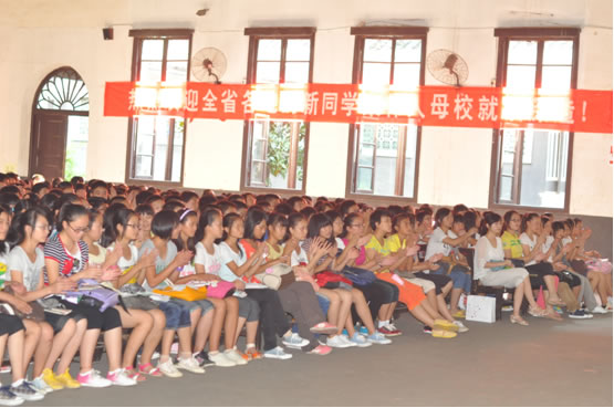 鲜花簇拥,彩旗飘扬,“百年师范、千年学府”几个大字在阳光下熠熠生辉。9月7日是2012级定向免费师范生来校报到的日子,来自全省各地的一千四百五十名学生怀揣着人民教师的梦想走进一师校园,我系师生以饱满的热情喜迎八方学子。