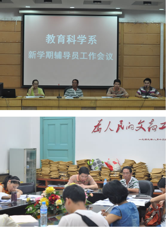 为了迎接新学期的到来,加强辅导员队伍建设,提高学生管理工作质量,8月29日下午,我系在城南校区多功能报告厅召开新学期辅导员工作会议,我系全体专兼职辅导员参加会议,系党总支书记张尚晏,系党总支副书记谭玉兰、蔡海军出席会议并讲话。