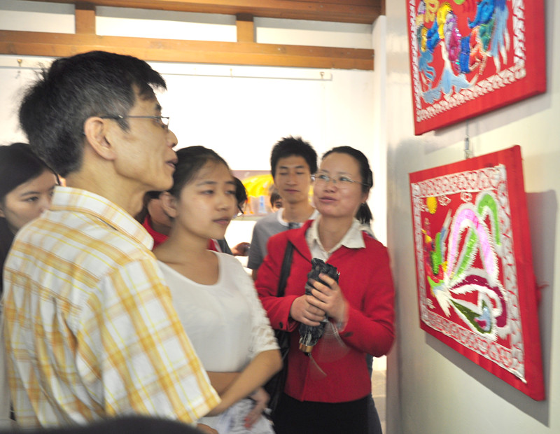 本次展览以“助残扶贫”为立意,参展作品有我系学生的刺绣作品,有长沙市天心区慧灵智障人士的油画作品以及广州市番禺区沙湾镇“关爱外来工子女”少儿油画作品。我系学生的参展刺绣作品均由张容舟、王勇全、姚英、于澎、黄灿、刘玄和王晓阳老师担任创作指导。展览中,《晨报周刊》、《三湘都市报》记者采访了张容舟副教授。