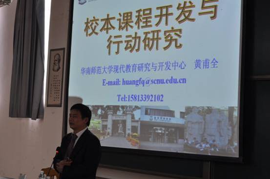 10月8日下午,我系与文史系联合举办“红烛论坛•专家讲学”,全国课程论专业委员会理事、华南师范大学教科院课程与教学系主任、博士生导师黄甫全教授应邀来东方红校区作了一场别开生面的《校本课程开发与行动研究》学术专题讲座,我系小学教育专业的师生、文史系部分师生、图书馆、继教部等相关部门领导及2011年国培计划小学语文骨干教师班学员共计400余人聆听了此次讲座。讲座由教科系蒋蓉主任、袁向荣副书记主持。