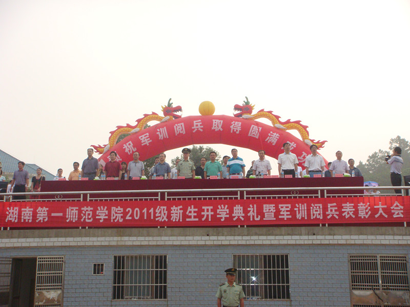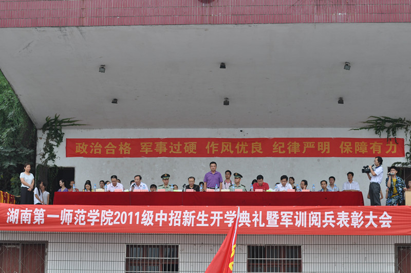 9月16日上午和9月17日上午,教育科学系2011级中招新生和高招新生分别参加了学院城南校区和东方红校区开学典礼暨军训阅兵表彰大会。武警湖南省总队直属支队领导徐四海、徐国水,学院领导詹小平、彭小奇、金潇明、刘鸿翔、李克勤、阳柏苏、刘宇、朱道弘、田明德、各职能部门负责人以及系部领导蒋蓉、张平柯、蔡海军、袁向荣等出席了阅兵典礼。大会由学院副院长刘志敏主持。