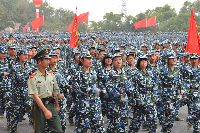 9月16日上午,系部2011级中招新生参加了学院城南校区开学典礼暨军训阅兵。首先,院党委书记詹小平在部队首长的陪同下检阅了各新生班组成的30个班级方阵和1个女子特别表演方阵。接着,院长彭小奇代表学院党委、行政向全体新同学做了重要讲话。武警湖南省总队直属支队首长徐四海和教育科学系主任蒋蓉分别代表师训部队和系部党政做了发言。整齐的队列、规范的动作、激动人心的口号,充分展现了教育科学系中招新生的风采。580班舒茂蓉同学和639班刘典钰同学分别作为中招老生代表和新生代表发言。经过各方阵激烈角逐和评审团的公正裁决,632班方阵、644班方阵获得一等奖,638班方阵、626班方阵、618班方阵、631班方阵获得二等奖;619班方阵、620班方阵、621班方阵、625班方阵、627班方阵、630班方阵、633班方阵、643班方阵获得三等奖。