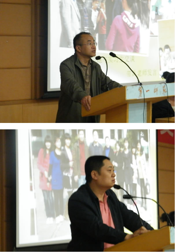 交流会中,06级优秀实习生代表520班彭立玉、525班吴代霞、522班张琨鹏、527班唐小雨、523班李佐娅、526班罗正康、524班汤雅雯等7名同学分别做了《基础教育,从“字”做起》、《让每朵花都能绚丽绽放》、《心路旅程》、《花开的声音》、《爱的收获》、《顶岗实习的日子》、《演绎美丽的教师人生》等主题发言。在发言中,他们精彩地讲述了自己在顶岗实习生活中的真实感触和丰富收获,提到了城乡教育的差距以及农村基层教育事业的任重道远,表达了对农村基础教育的赤子之心和热爱之情。