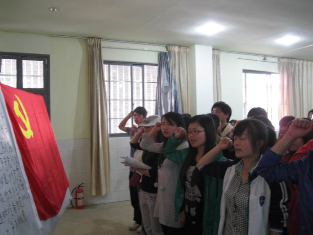 第二阶段为党员纳新仪式,首先,苏丹等89名入党积极分子轮流发言,向大会汇报自己对党的认识、入党动机、现实表现等。经过党员的讨论与投票,决定吸收苏丹等89名入党积极分子为预备党员。最后,苏丹等89名预备党员在庄严的党旗面前郑重宣誓:“我志愿加入中国共产党……”,朝气蓬勃的声音,在科技楼里久久回荡。