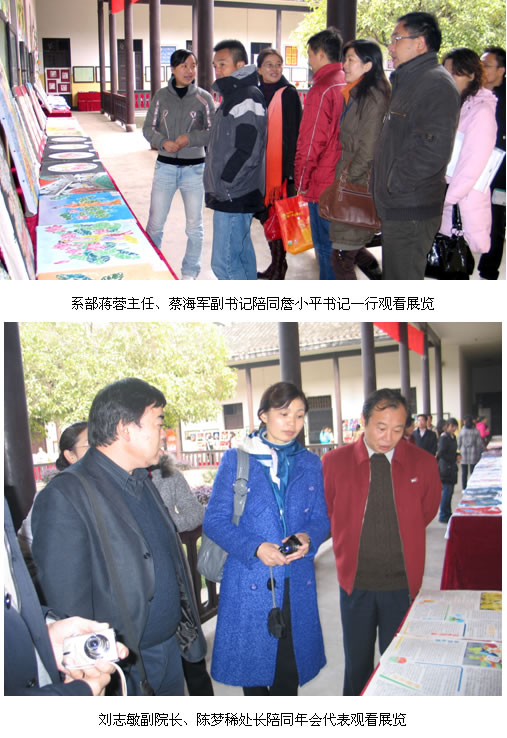 11月14日下午,展览接待了第一批尊贵的来宾——2009年全国教师教育学会小学教师教育委员会年会代表。年会代表们在我院刘志敏副院长、教务处陈梦稀处长和小教大专部蔡海军副书记等的陪同下非常欣喜地参观了展览。他们兴趣盎然地问这问那,赞不绝口,纷纷拍下许多照片。还有许多代表在看完展览之后欣然写下感言:“第一师范,名不虚传”、“千年学府,百年老校,人才摇篮,中华希望”、“文化传承,特色鲜明”、“师范传统,毕现一堂”、“一师的学生们真幸福”……