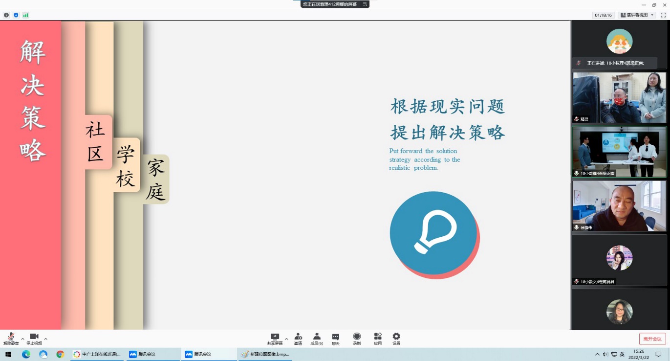 首先,梁正南同学就团队项目内容展开了五分钟的陈述。随后,徐教授分享了自己多年来挑战杯的参赛经验。徐教授从方案设计及实施、成果提炼、PPT制作等多个方面对我校挑战杯团队提出了宝贵的意见。他指出陈述时要注重科学性、故事性,好的课题应“题目抓眼、论证有力”,陈述人要展现课题的魅力,引发评委的共鸣。之后,何教授根据梁正南的陈述就研究综述、数据展示、PPT的呈现方式提出了独到见解,为我校挑战杯团队指明了方向。最后,黄月胜副院长对上海师范大学二位教授的线上指导表达真挚的感谢,并对学生作品寄予了殷切期望。