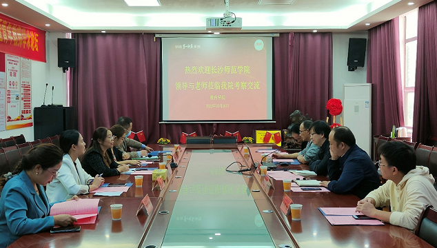 10月27日上午,长沙师范学院学前教育学院院长张晓辉、副院长杨琴等一行五人就心理学专业建设,心理学实验室建设等来我院考察交流。我院院长胡春光,副院长黄月胜、陈华仔,心理学教研室主任刘文、实验室管理员朱军成在特立北208会议室热情接待了来访人员。