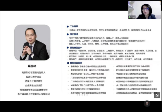本次讲座由朱丹老师主持,邀请的主讲人为刷新知行管理咨询创始人葛振林先生。葛振林先生拥有10年以上管理咨询和企业管理经验,是一名企业资深HR,他专注于利用心理学的理论帮助企业评估人才、发展人才,同时也擅长人才测评、沟通、领导力、职场成长等方面的培训。