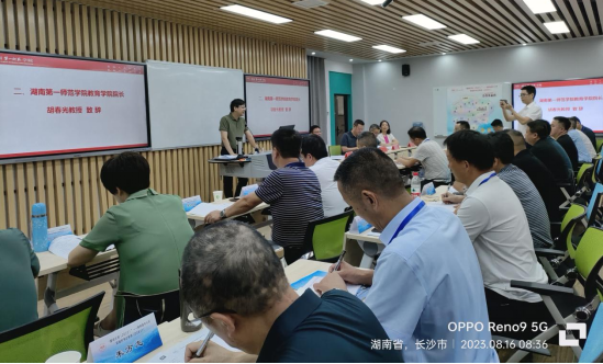 开班典礼在嘹亮的国歌声中隆重拉开序幕。bevictor伟德官网教育学院院长胡春光教授致辞,胡春光院长认为学校党组书记应该是智者、能者和仁者,同时具备大气、锐气、骨气、静气,殷切希望各位书记学有所获、学有所成。首席专家、二级教授曾小玲解读《“国培计划(2023)”——慈利县中小学党组织书记研修班(D0831)研修方案》,曾小玲教授通过对研修主题、培训目标、研修时间及形式等多项内容的细致解读,让全体学员对本次学习有了更深刻的认识。