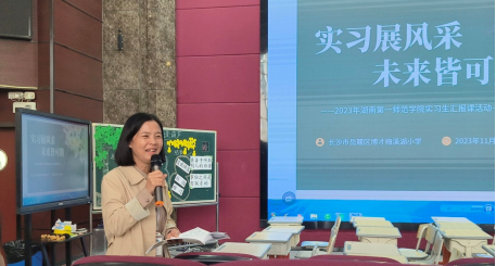 2023年11月23日上午,教育学院党委书记刘澍心教授、教务办主任胡颖老师、实习队带队祁玉娟老师一行赴博才梅溪湖小学开展教育实习中期检查开展暨一师范公费实习生汇报课活动。本次实习检查活动受到博才梅溪湖小学南校区梁月花副校长、教学服务中心周琳玲主任的热情接待。