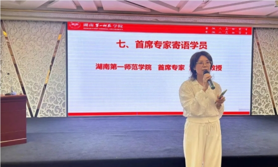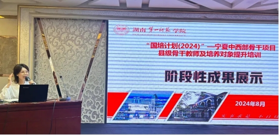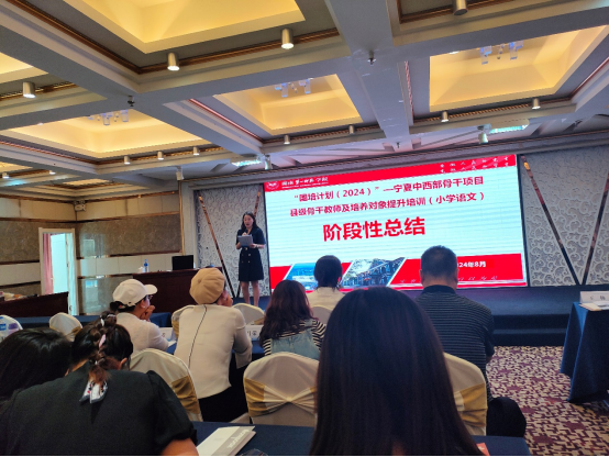 集中培训阶段的总结仪式,同样让人心潮澎湃。总结仪式由副班长马悦主持。仪式伊始,宣传委员播放了回顾培训历程的小视频,那些充满激情的学习场景、热烈的讨论画面、专家的精彩讲授,一一呈现在眼前,让人感慨万千。接着,班长张俊贤作为学员代表深情发言,她回顾了培训的收获与成长,表达了对未来教学的信心与决心。接着班主任袁利芬老师、首席专家黄朝霞教授先后寄语学员,她们对学员们的努力和进步给予高度肯定,并对后续培训工作提出了新的要求。最后,吴忠市师资培训中心的马冬琴老师发言,马老师赞扬了培训团队的专业性,并对学员们寄予了厚望。