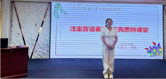 8 月 27 日,该项目进行了阶段性成果汇报展示暨总结仪式。阶段性成果展示以“指向‘教学评’一体化的单元教学设计”为主题,要求学员先小组集体备课,梳理单元思维导图,进行单元整体教学设计,每位学员从中认领任务,反复磨课,如此打磨多次,不断完善单元整体教学设计方案,最终丁雪、王春瑞、杨艳等6位学员代表小组精彩亮相,他们紧密结合新课标理念、教材、学情、任务情境等对单元教学进行整体设计,完美地展示了培训学员的认真和卓越。评委袁利芬老师激动地说:这是一次非常成功的汇报展示,既有集体的智慧,又有个人的独特光芒。首席专家黄朝霞教授则一一指出各小组整体教学设计的特点,充分肯定学员们的表现,并提出了宝贵的建议。
