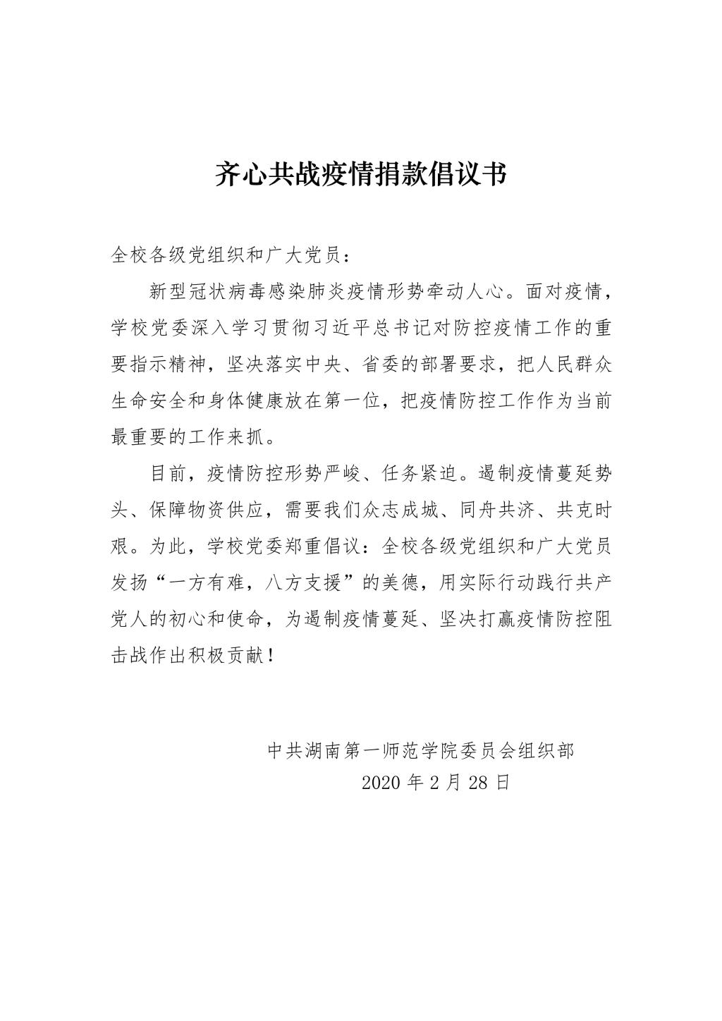 党员自愿捐款倡议书