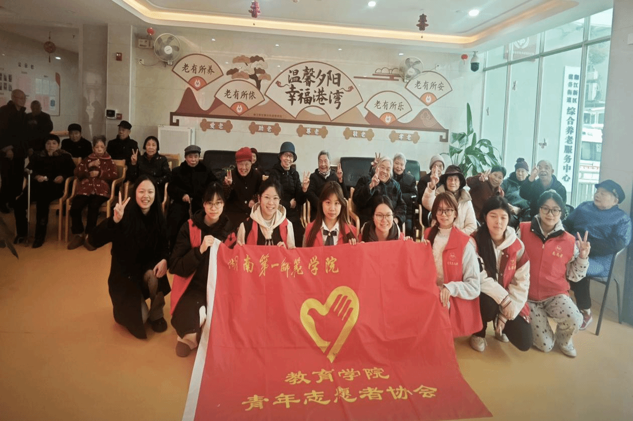 为积极回应老龄化社会的现实需求,搭建跨代沟通的暖心桥梁,11月20日,教育学院青年志愿者协会走进长沙市麓谷街道敬老院,开展以“银龄共学·情暖夕阳”为主题的志愿服务活动。十余名朝气蓬勃的青年志愿者与三十余位银发长者齐聚一堂,共度了一段温馨而充实的时光,用青春与岁月的对话,书写了一曲温情流淌的文明篇章。