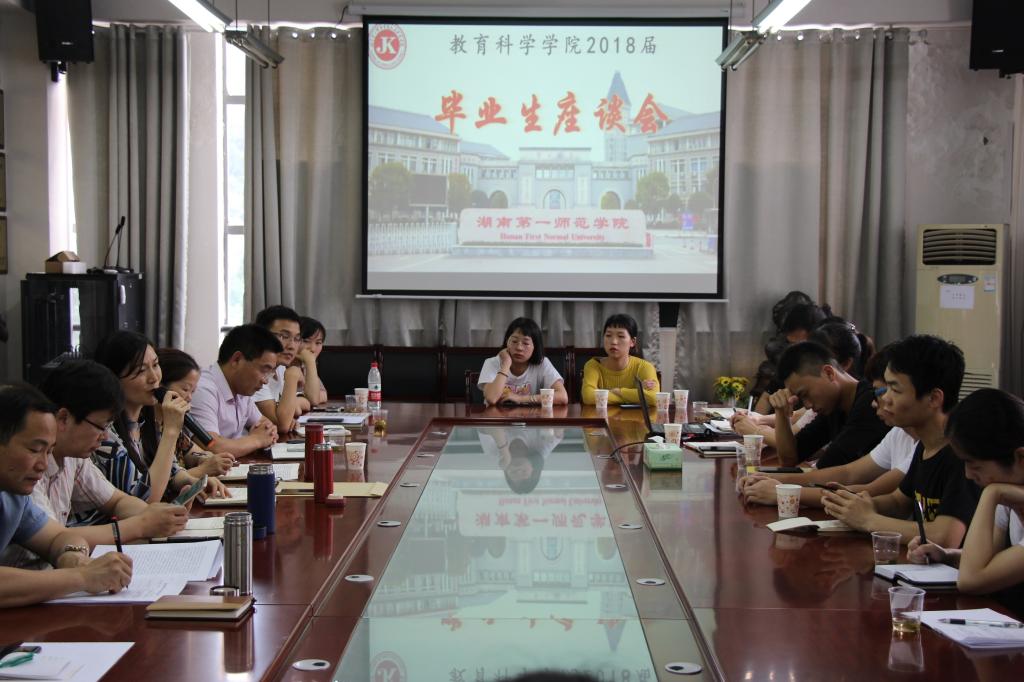 6月15日下午,教育科学学院2018届毕业生座谈会于特立搂北栋208会议室顺利召开。此次座谈会由学院张俭明副书记主持,蒋蓉院长、陈天涯书记、胡春光副院长、王建平副院长、学工办副主任刘军及毕业班带班辅导员罗娱 、董晓娅 、刘森林以及30余名毕业生代表出席此次座谈。