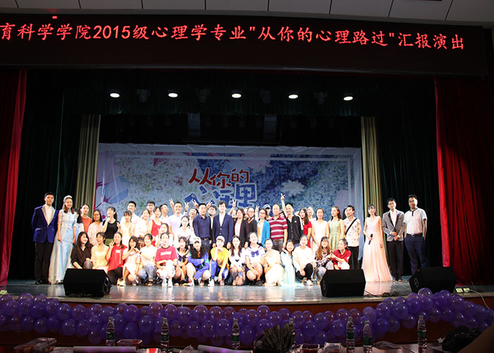 5月31日晚,教育科学学院2015级心理学专业“从你的心理路过”汇报演出于特立楼演播厅隆重举行。学院副书记张俭明、副院长胡春光及心理教研室全体老师与辅导员老师应邀出席,近300名师生及学生家长到场观看演出。