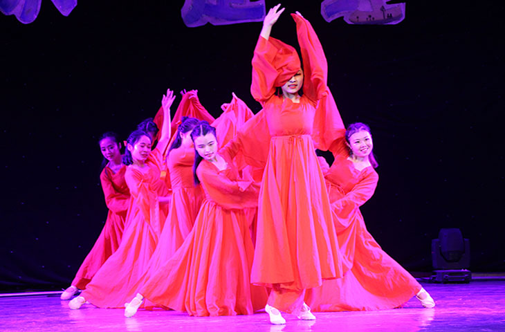 伴随着一曲激动人心的开场爵士舞Bboom Bboom,专业汇报演出正式开始。首秀歌伴舞表演《待我长发及腰》使现场不断升温,掌声不绝。民族舞《寻梦花溪》、古典舞《繁华》、拉丁舞《你知道我在等你吗》用优雅不失热烈的舞姿与娴熟的舞蹈技艺传达出了炽热的情感。小品《小花上课》用最贴近生活的方式表达了对留守儿童的关爱以及共创美好未来的主题。光影创意秀《一起同过窗》、杯子伴奏之《稻香》的表演创意十足,令人耳目一新,别具一番风味。而淡雅恬静的器乐才艺展示River Flows in You更是动人心弦、回味悠久。时而舒缓时而激昂的朗诵节目《明天,你好》传达出学子们对昨天最深情的回忆以及对明天的最美好的展望。