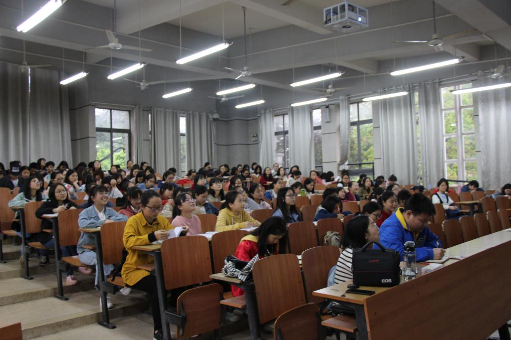 4月13日下午,我院副院长王建平教授在怀中楼B栋107教室作了新加坡访学交流报告,我院200余名学生到场聆听。