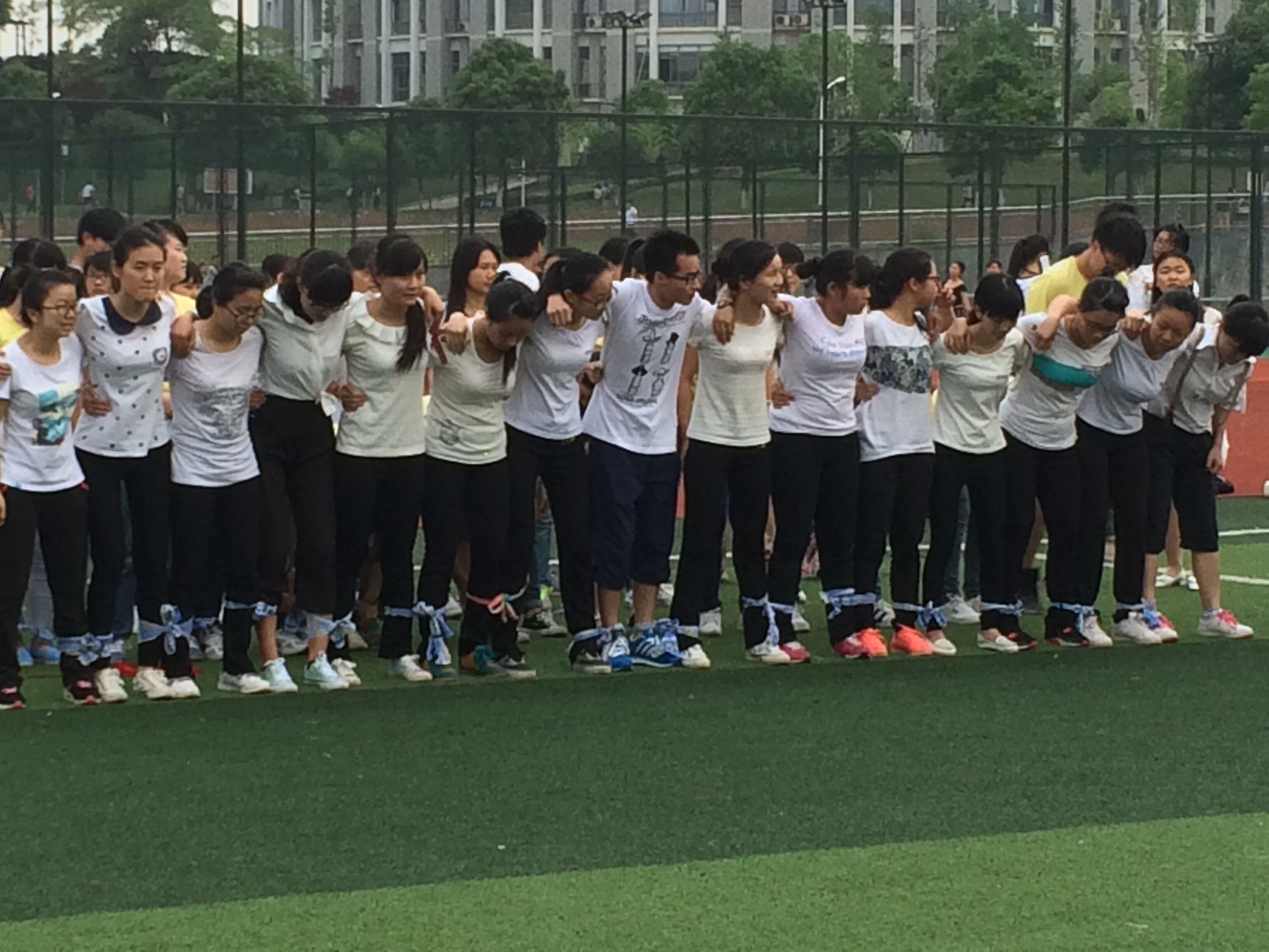 2015年5月20日下午6点,教育科学学院在东方红校区田径场举行了趣味“绑腿”运动赛。13、14级共31个班级参加初赛,12个班级180名选手进入决赛。教育科学学院副书记谭玉兰、学工办主任陶青观看了本次比赛。