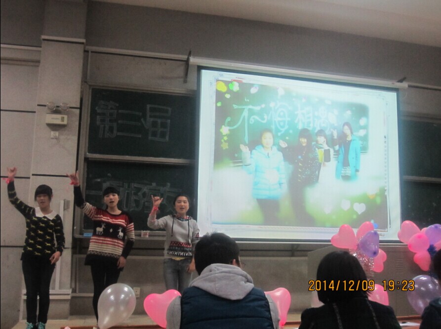 2014年12月9日晚7点整,教育科学学院“一师好室友”活动总决赛在东方红校区文科楼b栋206教室举行。应邀参加此次活动的专职辅导员刘军、杨杨、罗娱老师,校宿管部副部长张星宇、周琳娜,学院学生会副主席李娜、米晶、陈思全,文娱部部长颜雅婷,实践部部长万益酉等师生担任本次活动的评委。学院团学会各部门、各班派出代表观看了本次决赛。