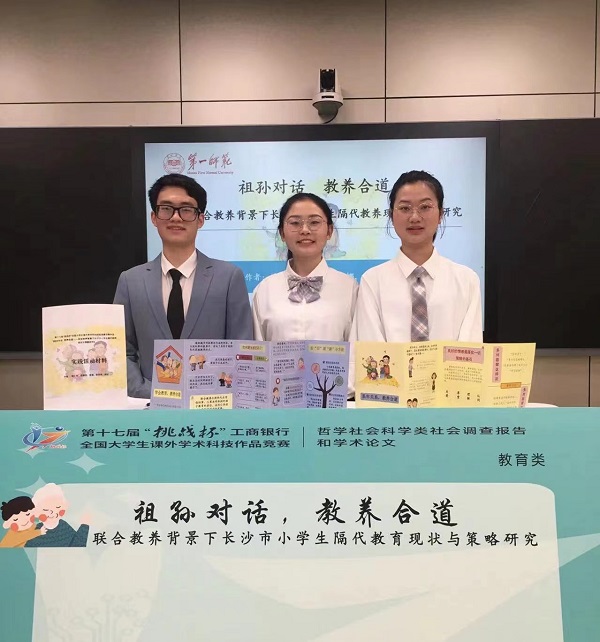 3月29日,第十七届“挑战杯”全国大学生课外学术科技作品竞赛授奖名单公布。由教育学院邓栩副教授指导,梁正南、谈锦云、蒋娜、蒋旻君、颜旺合作完成的作品《祖孙对话,教养合道——联合教养背景下长沙市小学生隔代教养现状与策略研究》荣获全国二等奖。