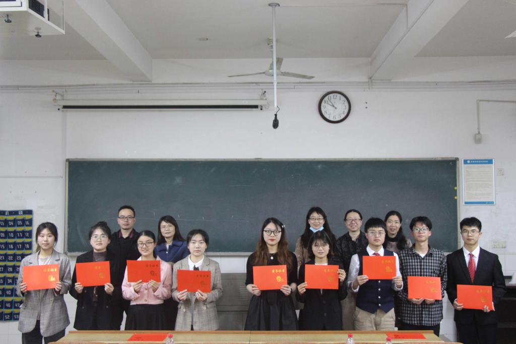最终,经各方面综合评选,巫晨、罗毅、王赛雯3名同学荣获甲组一等奖,刘晓文、张芷萌等4名同学荣获甲组二等奖,杨玉敏、李娟丽等5名同学荣获甲组三等奖;袁子能、蔺萌萌2名同学荣获乙组一等奖,江政麒、李红生等5名同学荣获乙组二等奖,张蕴、黄堯等8名同学荣获乙组三等奖。