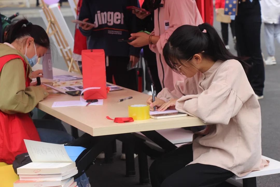 午日意暖,秋高气爽。活动上,志愿者们将优秀的爱心作品展示出来,供其他同学参观学习。参与活动的同学们将自己的捐赠物放入捐赠箱中,并在留言板上写下爱心寄语。每一份捐赠品、每一句爱心寄语都蕴含着教育学院同学们的美好祝愿,给贫困山区小学的孩子们带去了温暖与光明。