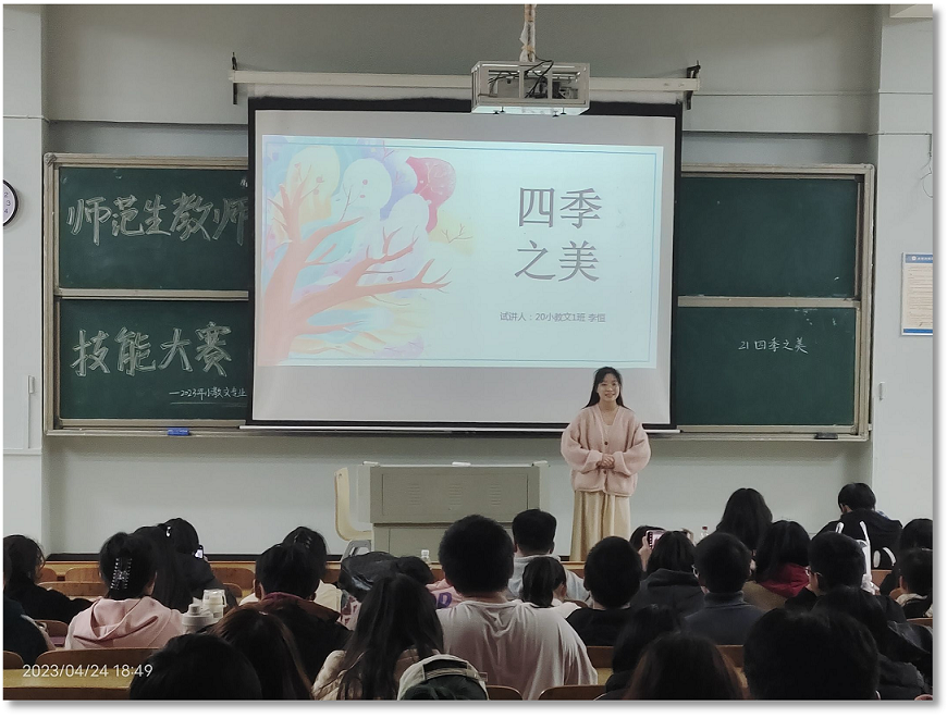 此次比赛由教学设计、片段教学、多媒体课件制作、教学板书四个部分组成。16位选手依次进行精彩的片段教学展示,他们准备充分,教学设计别出心裁,语言表达准确生动,富有创造力,沉着冷静,共同为大家演奏着教育之音,充分展现了我院学子扎实的基础教学技能与师范生未来可期的教师风采。