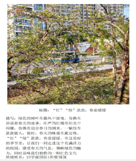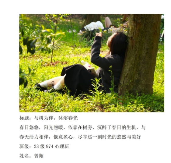 “留住春天的脚步”春日摄影活动,不仅锻炼了学生的摄影技能,更让他们在观察与创造美的过程中,感受到了心灵的成长与蜕变。它不仅让学生们感受到了春天的温暖与活力,更在他们心中种下了关注心理健康的种子。这场活动将成为学生们人生旅途中难忘的记忆,也期望每一位学生都能带着这份积极向上的力量,迎接充满阳光与希望的未来。