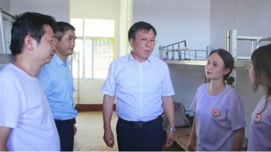 胡穗校长充分肯定了教育志愿服务团采取沉浸式教育推广红色文化的努力,对活动的初步成果给予高度赞赏。他表示,同学们非常优秀,叮嘱同学们在实践活动过程中要学会学习,始终牢记“要做人民的先生,先做人们的学生”的校训,向人民学习,向社会学习,向实践学习,读好无字之书。他强调,同学们要学会感激,感激乡政府和教育学院提供的有力保障与支持,尤其要感激本次“三下乡”带队老师谢泉峰,在教学科研任务繁重的情况下和同学们共同下乡支教,将“一切为了学生,为了学生一切”的一师理念落在实践中。他提出,在实践过程中同学们要相互帮助,遵守纪律,教师和队长要切实担当起管理责任,同学们要服从统一指挥。最后,他提醒大家务必加强安全意识,妥善处理好与学生和家长之间的关系,确保人身安全。在和同学们亲切合影后,胡穗校长亲自到师生宿舍了解了住宿情况,表扬了同学们的内务干净整洁,叮嘱同学们注意防暑降温。