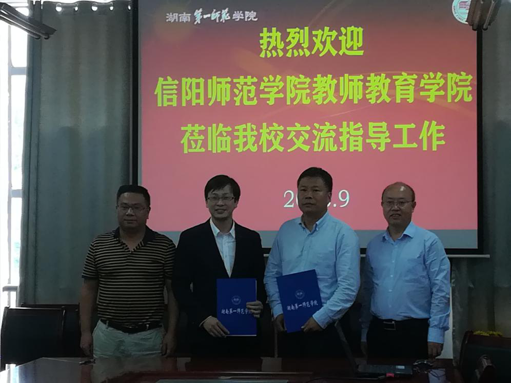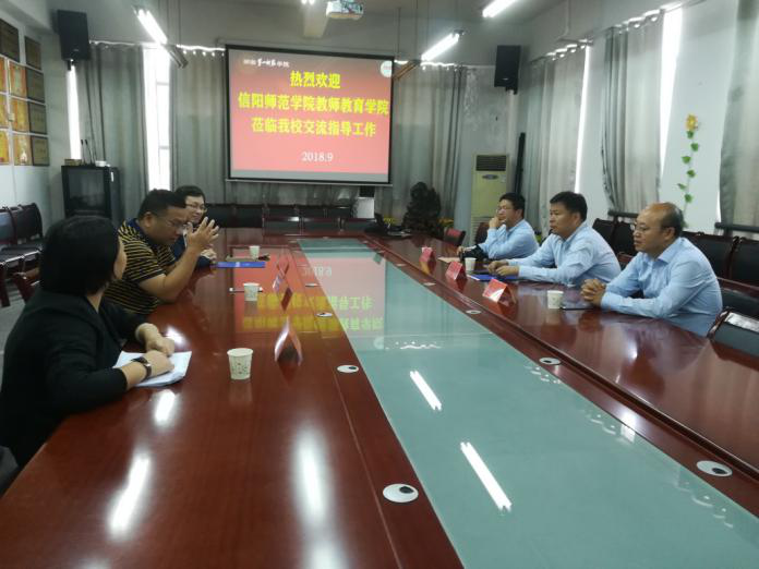 9月27日下午,信阳师范学院教师教育学院付永昌院长、李文田博士、张祥耀老师等一行3人来我校教育科学学院考察学习。我校科研处赵奇钊处长,教科院副院长胡春光及院长助理曾晓洁在特立楼北栋208会议室热情接待了来访人员。