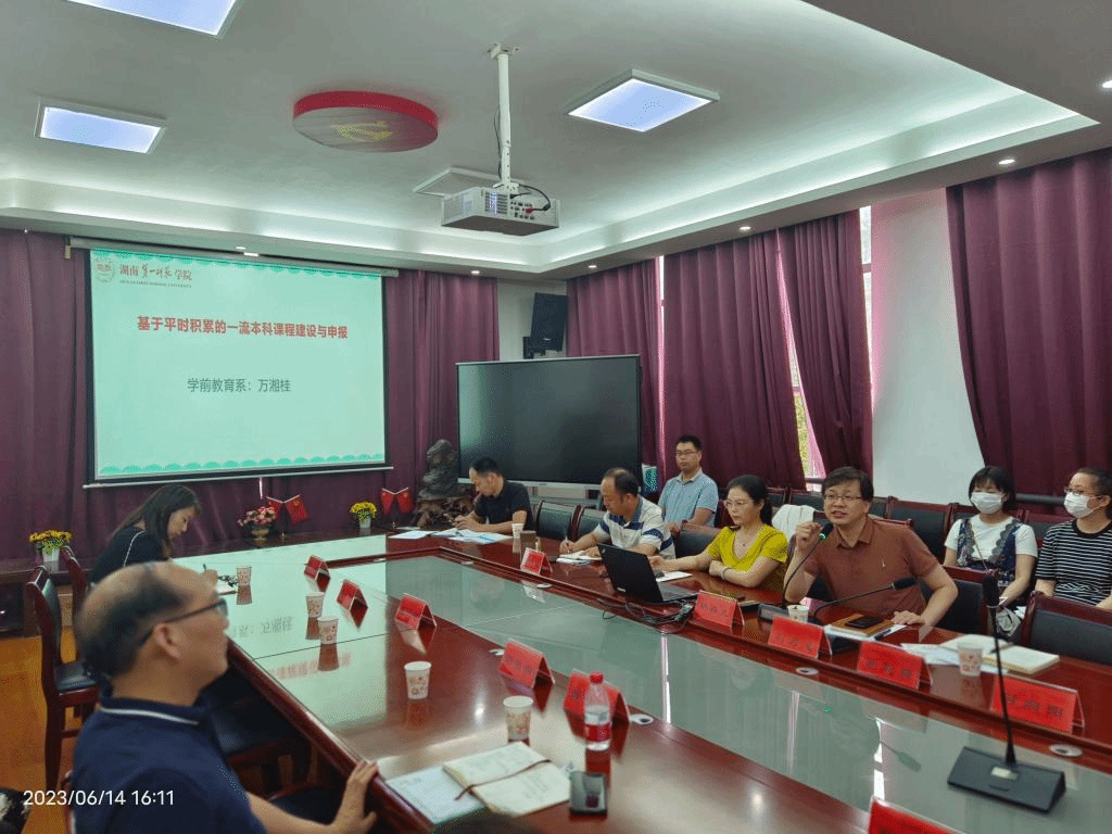 2023年6月14日下午,教育学院国家一流本科课程《0-3岁婴幼儿保育与教育》申报与建设分享会在特立北208会议室顺利举行。学前教育系主任、该课程主持人万湘桂副教授做了主题为“基于平时积累的一流本科课程建设与申报”的分享报告,教育学院全体教师聆听了本次分享会。