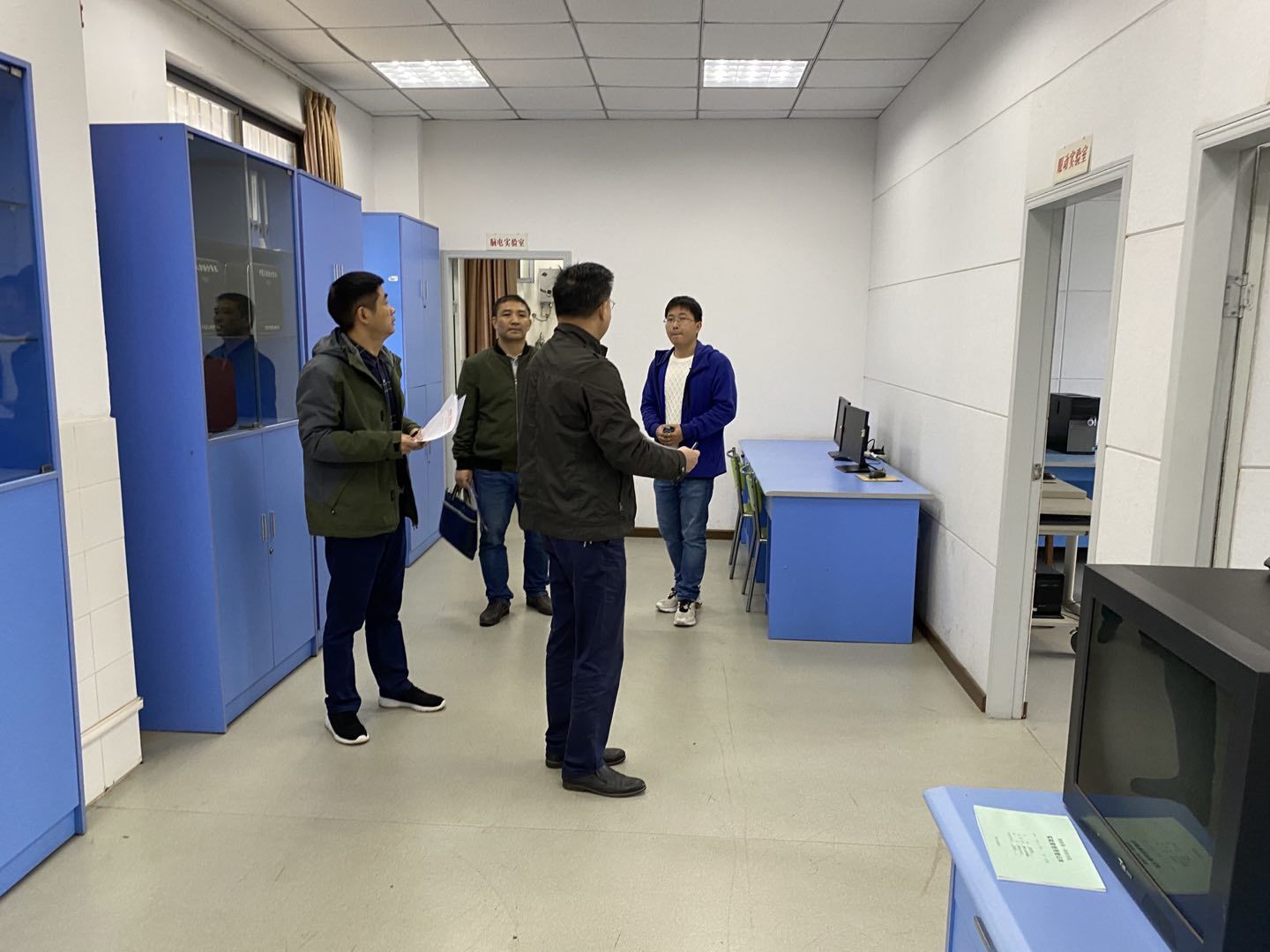 10月16日上午9:00,公管中心朱承学处长,教务处李建亚副处长,教学督导王智刚教授对教育科学学院实验室进行了常规检查。实地调查了0~3岁早教模拟微型教室、梦想教室、儿童能力训练室、团体心理辅导室、基础心理学实验室、脑认知实验室、团体沙盘实训室、大学化学实验室、大学生物实验室、模型创新实验室、小学科技制作室、地球与空间实验室、小学科学多功能实验室、物理演示与探索实验室、数码互动实验室、大学物理实验室(一)、大学物理实验室(二)、基础地质实验室。从实验室规章制度、实验室安全环境、实验室管理台账3个方面对实验室的管理提出了要求。教科院将在实验室内外环境卫生、实验室使用登记本、耗材使用记录情况上进行进一步完善。