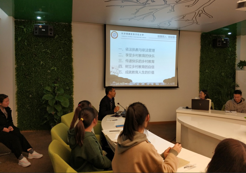 2018年11月29日下午,为进一步加强一师学子对乡村教育的认同感,解除一师学子对师德方面的困惑,东方红小学周大战校长特地为我们一师全体东方红小学实习生在“周大战名校长工作室”准备了一场关于“乡村教育教师师德”方面的讲座。