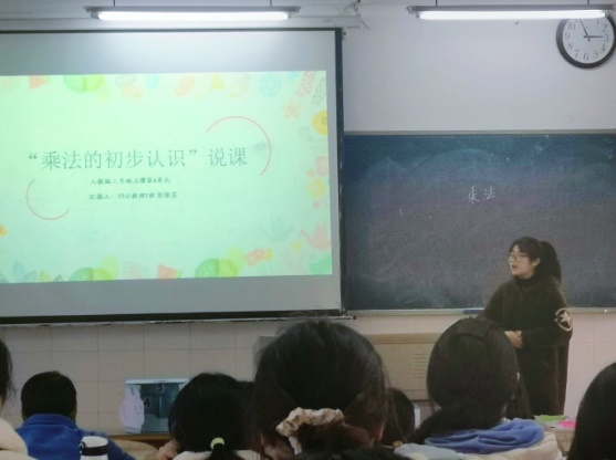 本次参赛选手共有11位同学。每位选手结合PPT进行10分钟的说课,尽管时间紧、要求高,但各位实习生胸有成竹、沉着应战,相继登上讲台进行说课比赛。选手们镇定从容、思路清晰,从教材、学情、教学方法及教学理念、教学过程等方面入手,全面阐述说课内容。选手们的说课设计结构合理,重点突出,理论依据充分,表现了较好的驾驭教材、教学设计能力和良好的语言表达能力。每位选手都有自己的设计风格,如:罗毅同学结合视频辅助说课、彭缘芳同学借用绘本创新课堂、刘晓文同学联系多版教材进行比较分析……