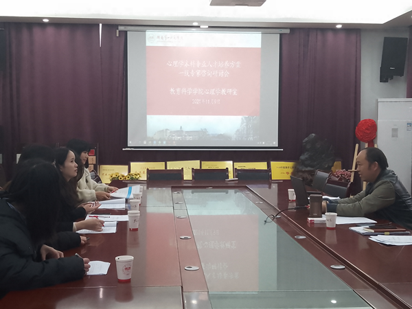 为进一步优化心理学专业人才培养方案,2021年12月8日下午,教育学院在特立北208会议室召开心理学专业人才培养方案(2021版)一线心理健康教育骨干教师研讨会。会议邀请了长沙高新区麓谷第二小学周鑫老师、望城区第二中学张春香老师、浏阳市新文学校彭江老师、长沙市望城区长郡斑马湖中学龙慕蓉老师、谢宇宙等出席会议,教育学院黄月胜副院长主持会议,心理学系刘文主任、朱丹老师参加了本次会议。